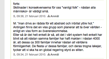 Today there was a debate article on written by Bo Ekman from the Tällberg Foundation, promoting some kind of New World Order in Dagens Nyheter and Svenska Dagbladet, the two most influential newspapers in Sweden.